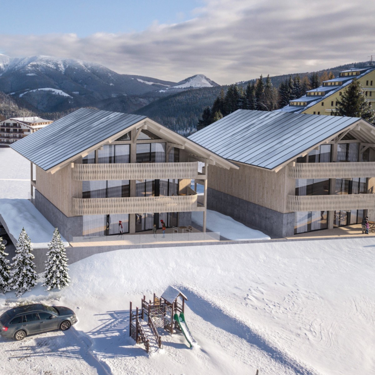 Projekt 2 Chalets Donovaly prináša dvojicu trojpodlažných apartmánových chaletov s nadčasovou architektúrou, a súkromným parkovaním.